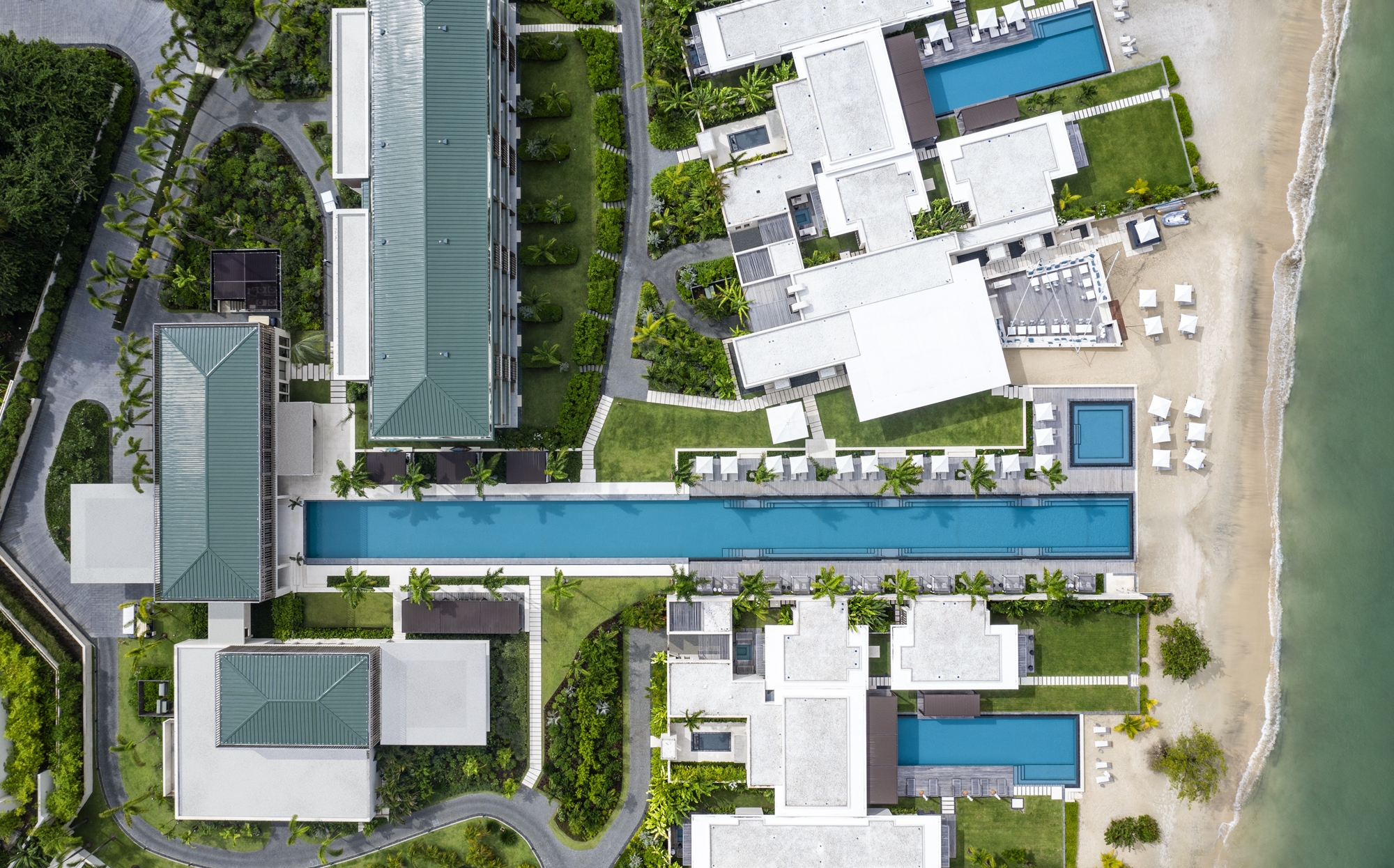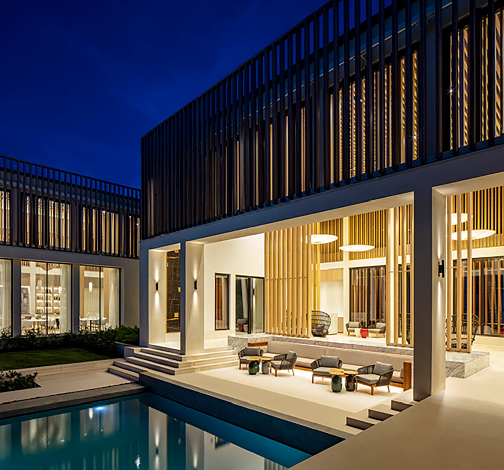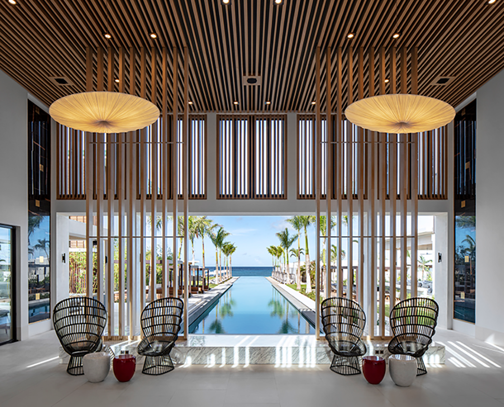Silversands on the island of Grenada has become the new destination in the Caribbean and a new benchmark for resorts. The resort’s aesthetic blends authenticity, nature, luxury, and modernity. The architecture, in all its simple forms and materials, defines the identity of the resort. We designed a layout that is focused on the guest experience and is primarily organized to showcase the stunning sea views, while ensuring the utmost degree of privacy. The exterior spaces echo the architecture’s modern lines through gardens, courtyards and water features. Terraces, day bed areas and pools are all designed to blend seamlessly with the architecture itself.