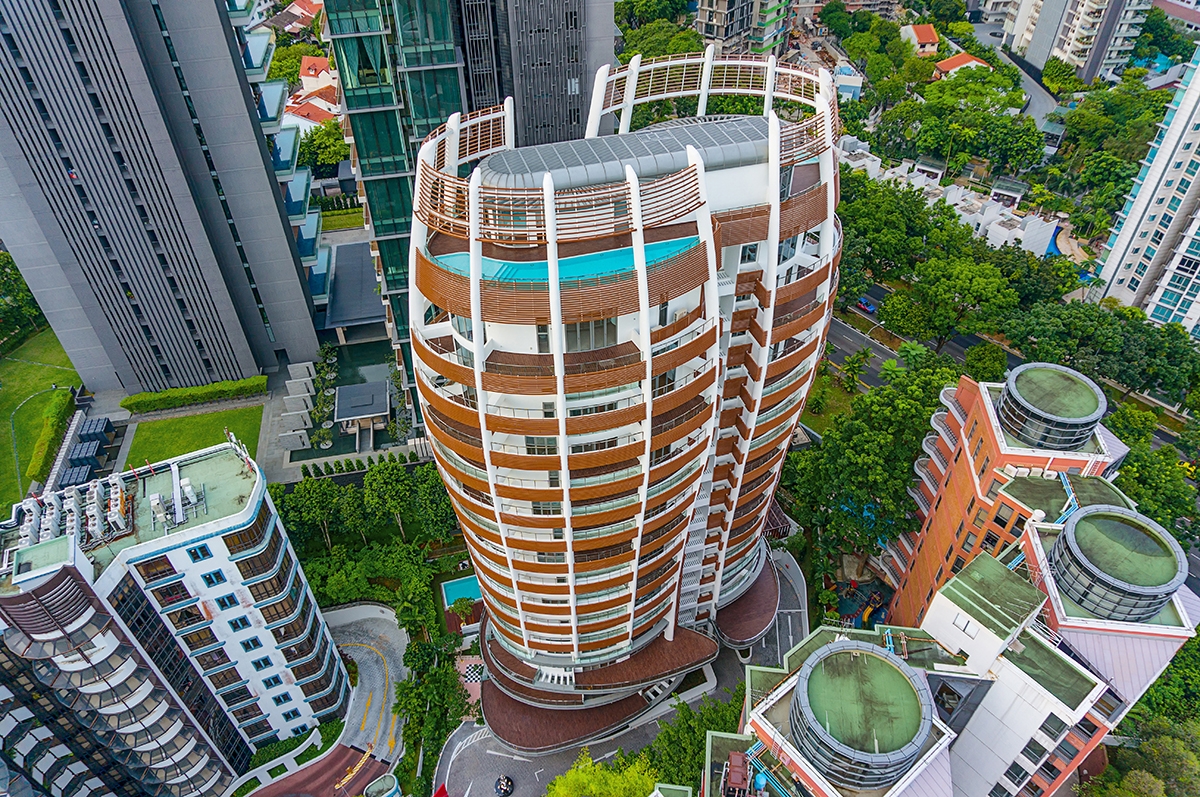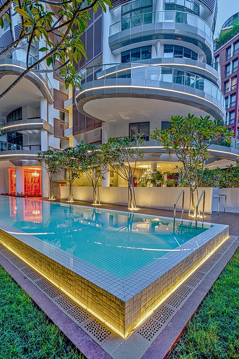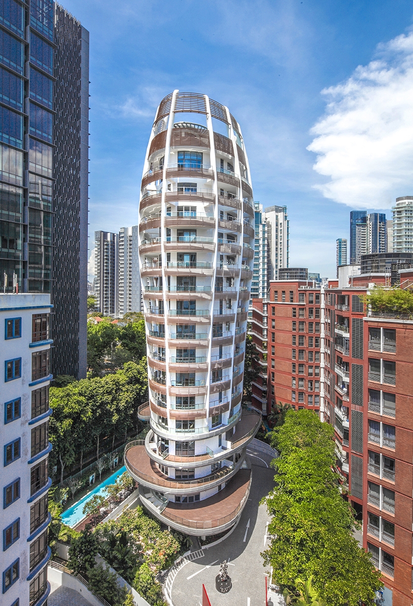 iLiv@Grange, a 16-story residential, is placed between two other higher towers. The site itself was highly constrained due to the proximity and height of the neighbouring buildings, throwing up the challenge of designing a project with a character that would stand out but not aggressively demand attention.