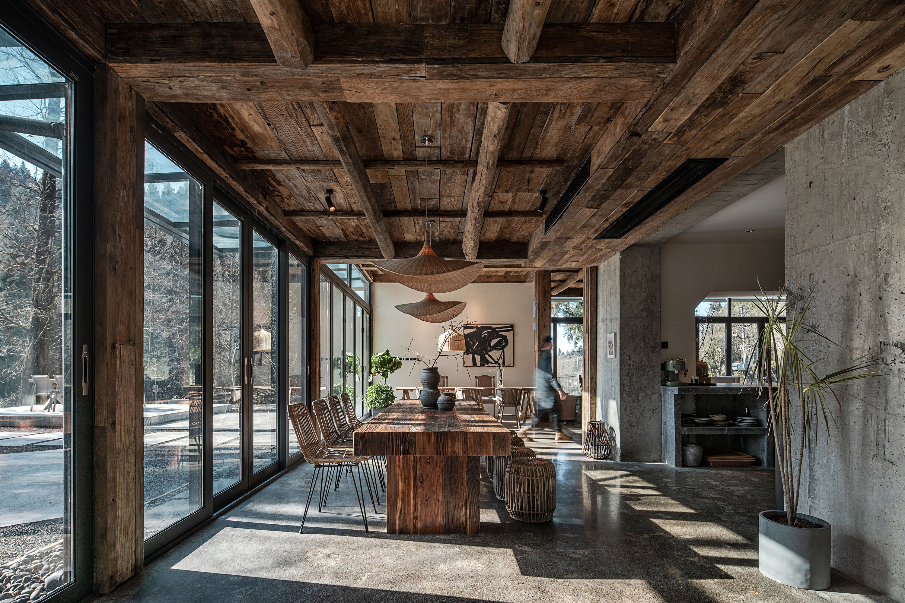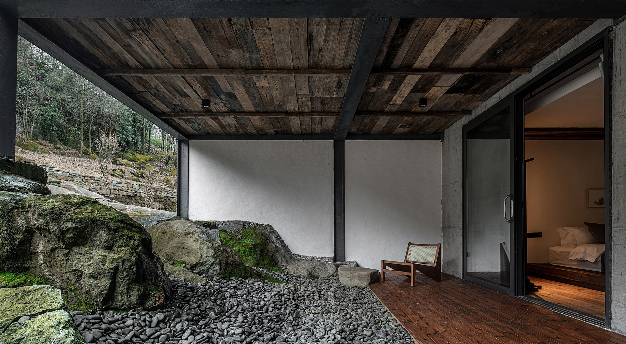 The site located next to Shanwangping Forest Park, the first karst ecological park in China. In order to meet the consumption needs of tourists, an old dwelling folk house is decided to be converted into a boutique hotel. This project aims to retain and respect the rural culture and natural environment of the site. The design completely preserves the original courtyard space and the exterior texture of the building, and updates it with contemporary amenities. It is hoped to create a new living space experience in which tradition and modernity co-exist in nature. It is hoped to retain the sense of traditional and historical building, while integrating the skills of modern art, to create an aesthetic space that is “unnaturally natural”, integrating man and nature, architecture and interior. It makes the architecture and interior space have a more traditional value, and it also reminds people of the feelings of their childhood hometown in nature. The cedar forest around the site has been carefully preserved. When people standing in the courtyard watching branches tossing in the wind, the surrounding trees have awakened theirs sense of belonging to nature and homeland.