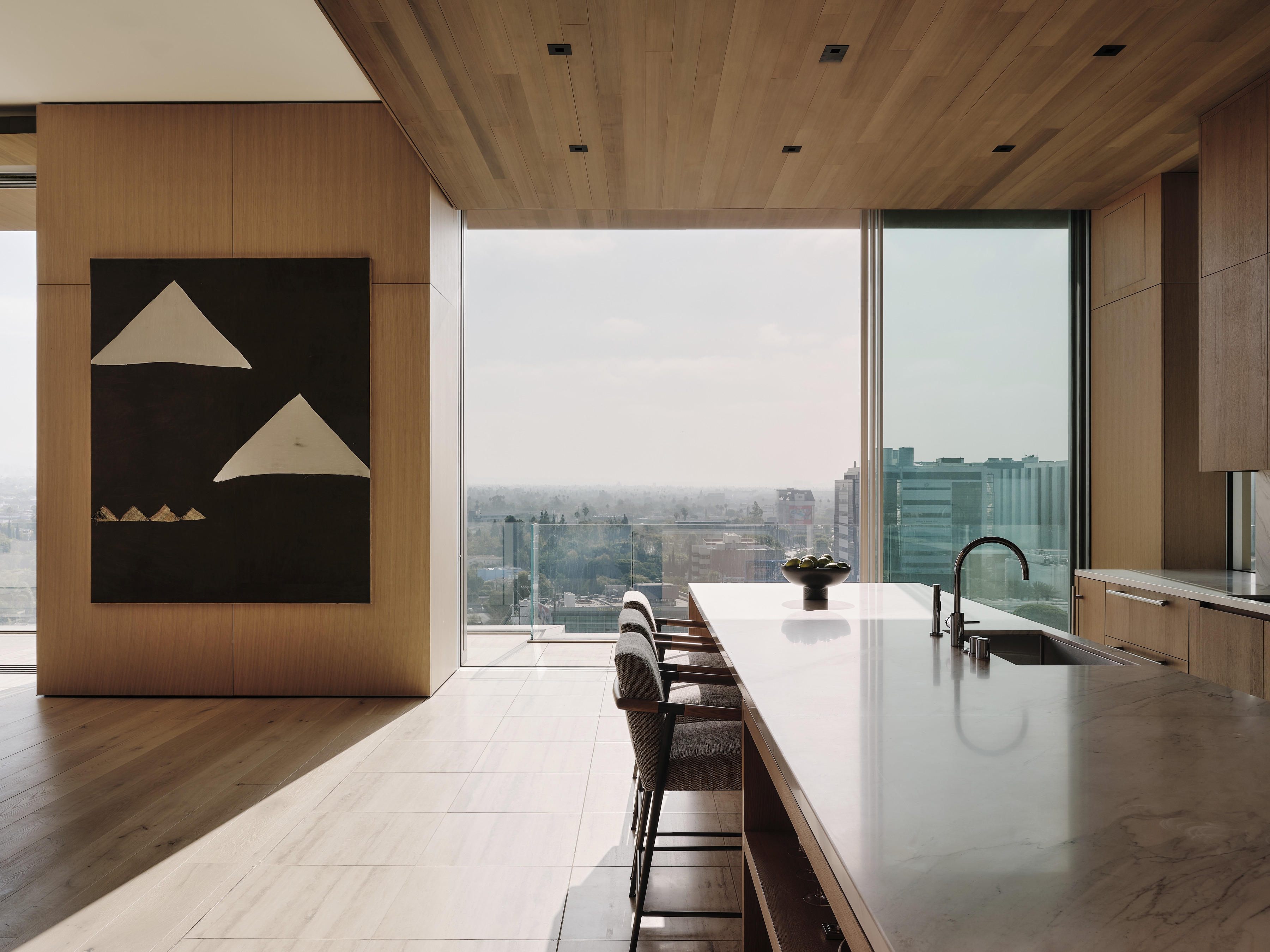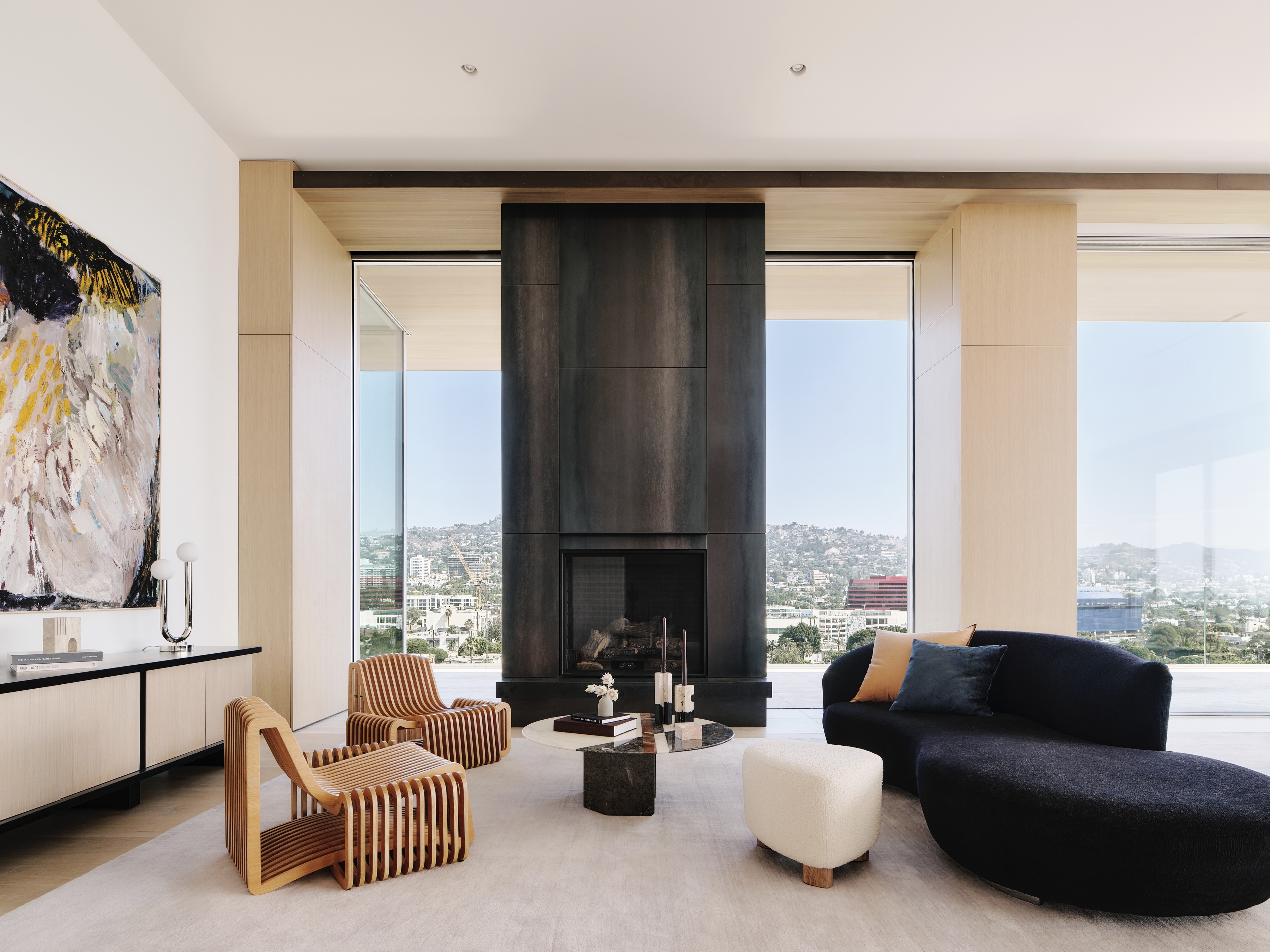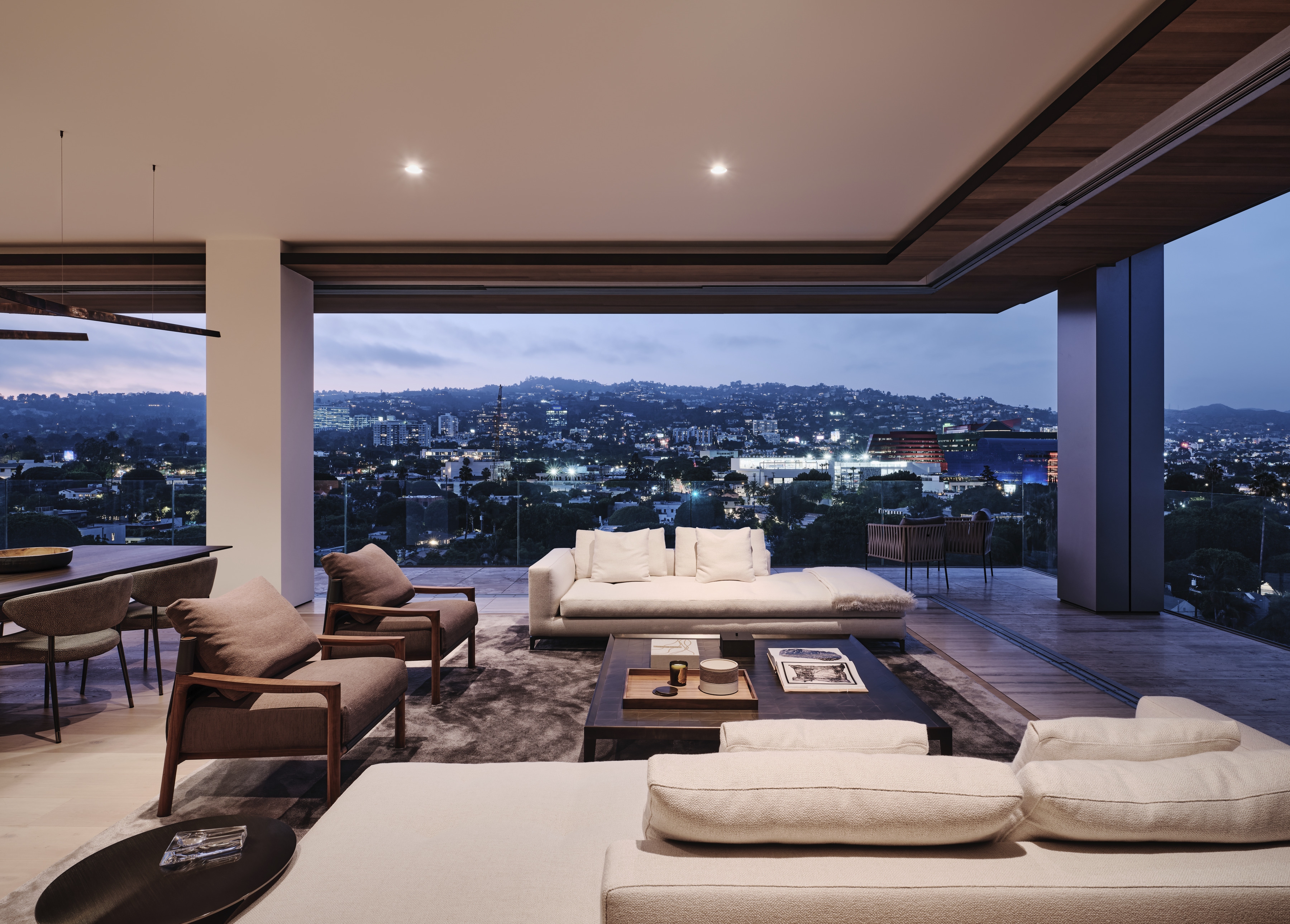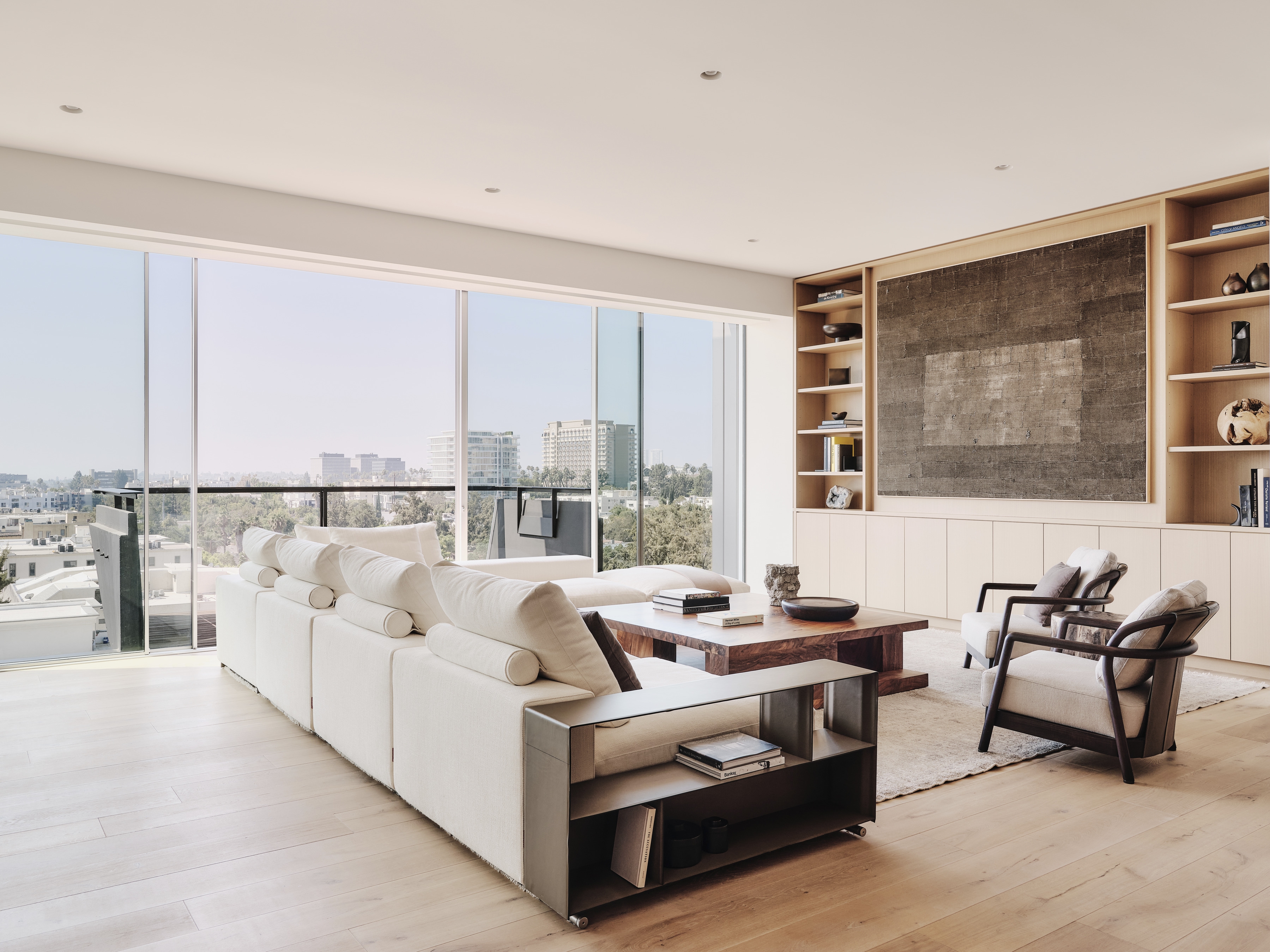 The revised design maintains the building’s original concrete balconies while increasing the amount of glazing throughout. On the upper levels, an innovative Swiss curtainwall glazing system and operable windows on every floor help dissolve the boundaries between inside and out. Roof terraces on the new penthouse level extend livable areas outdoors, opening to views of West Hollywood and the Hollywood Hills beyond. The updated façade contains an operable vertical shutter system to control shade and privacy.