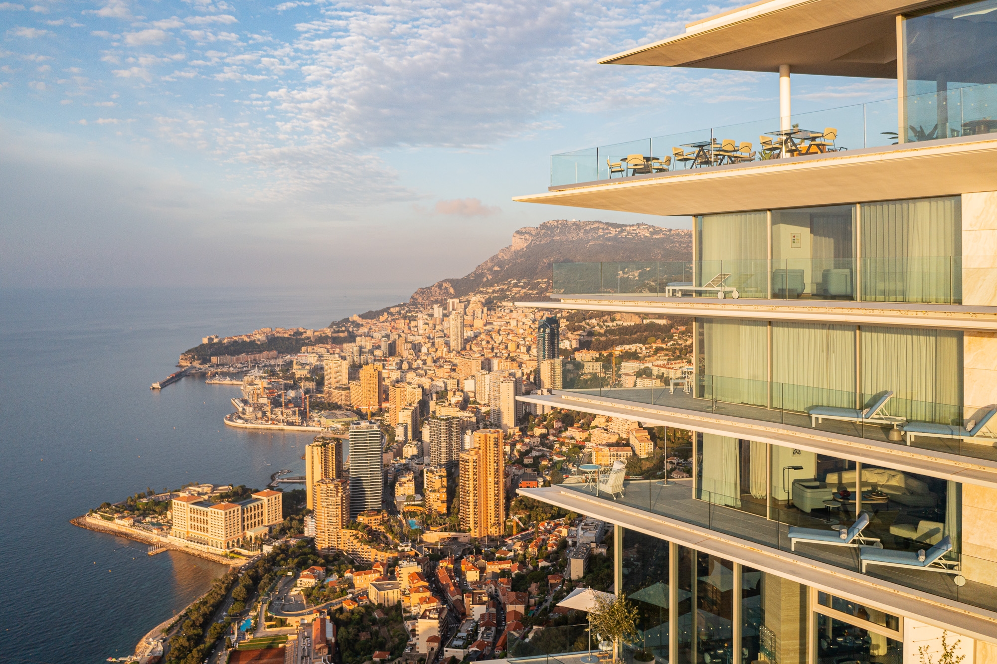 The project is structured in three entities: Vista Aero, Cristaux and Corniche. They harmonize architecturally and create a strong coherence of the building in the landscape.