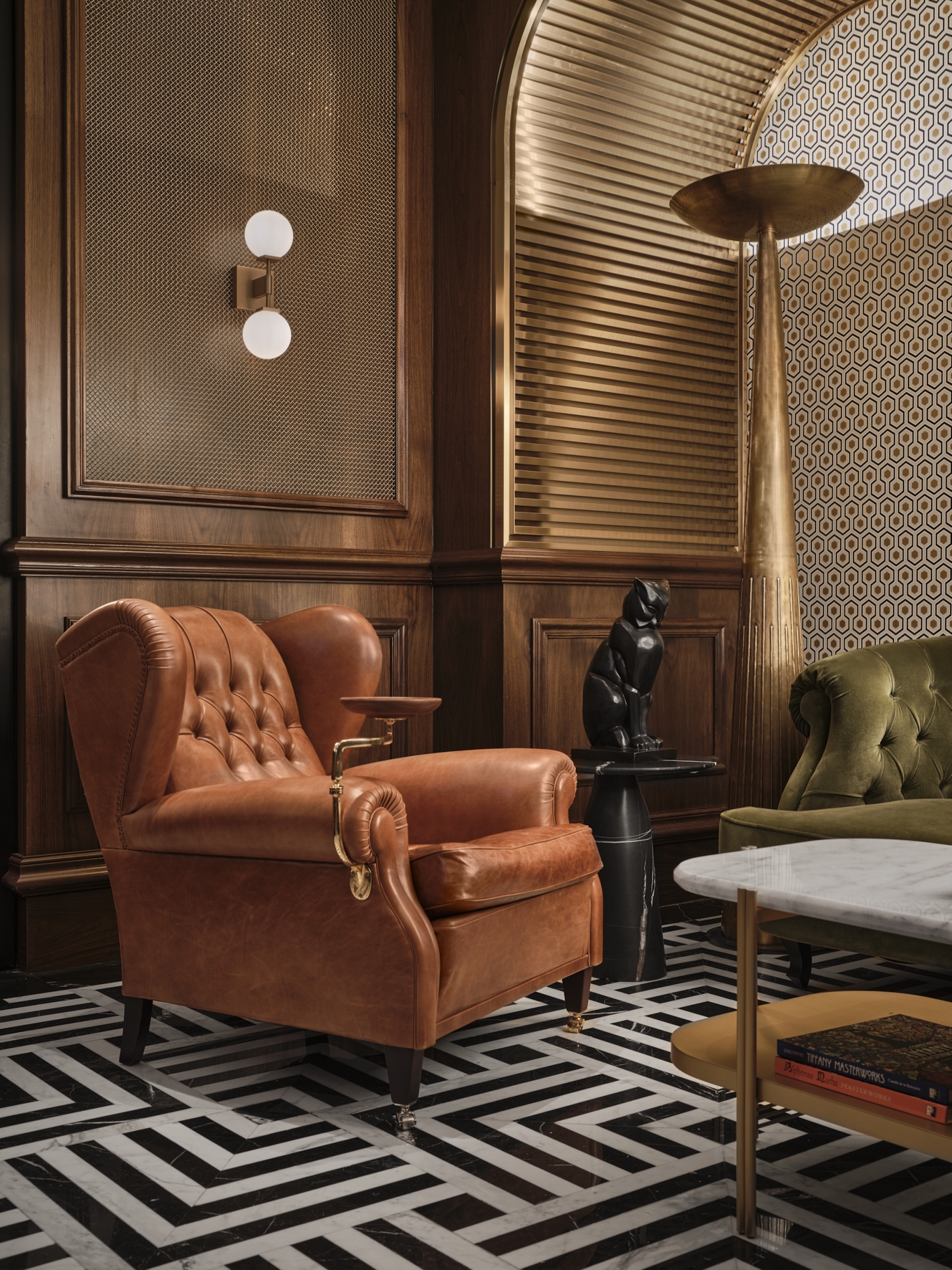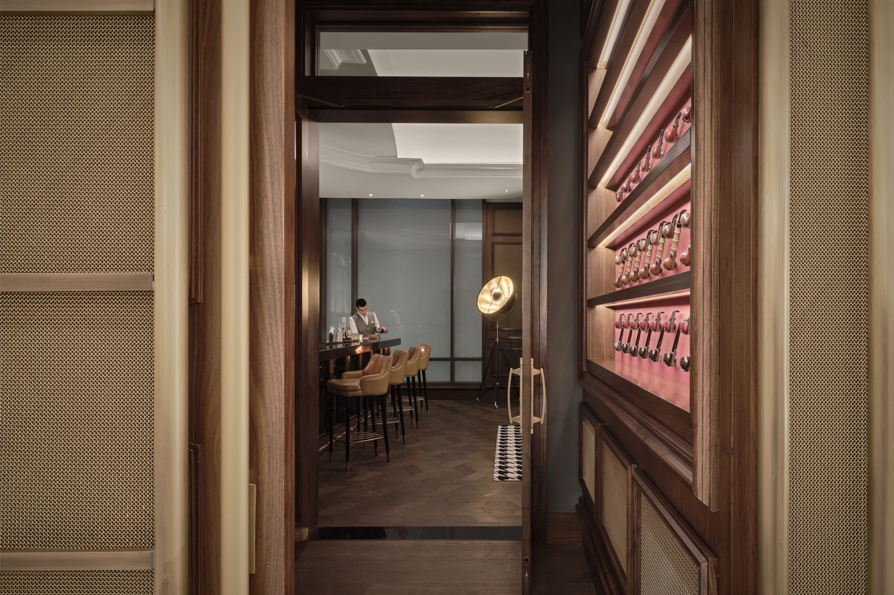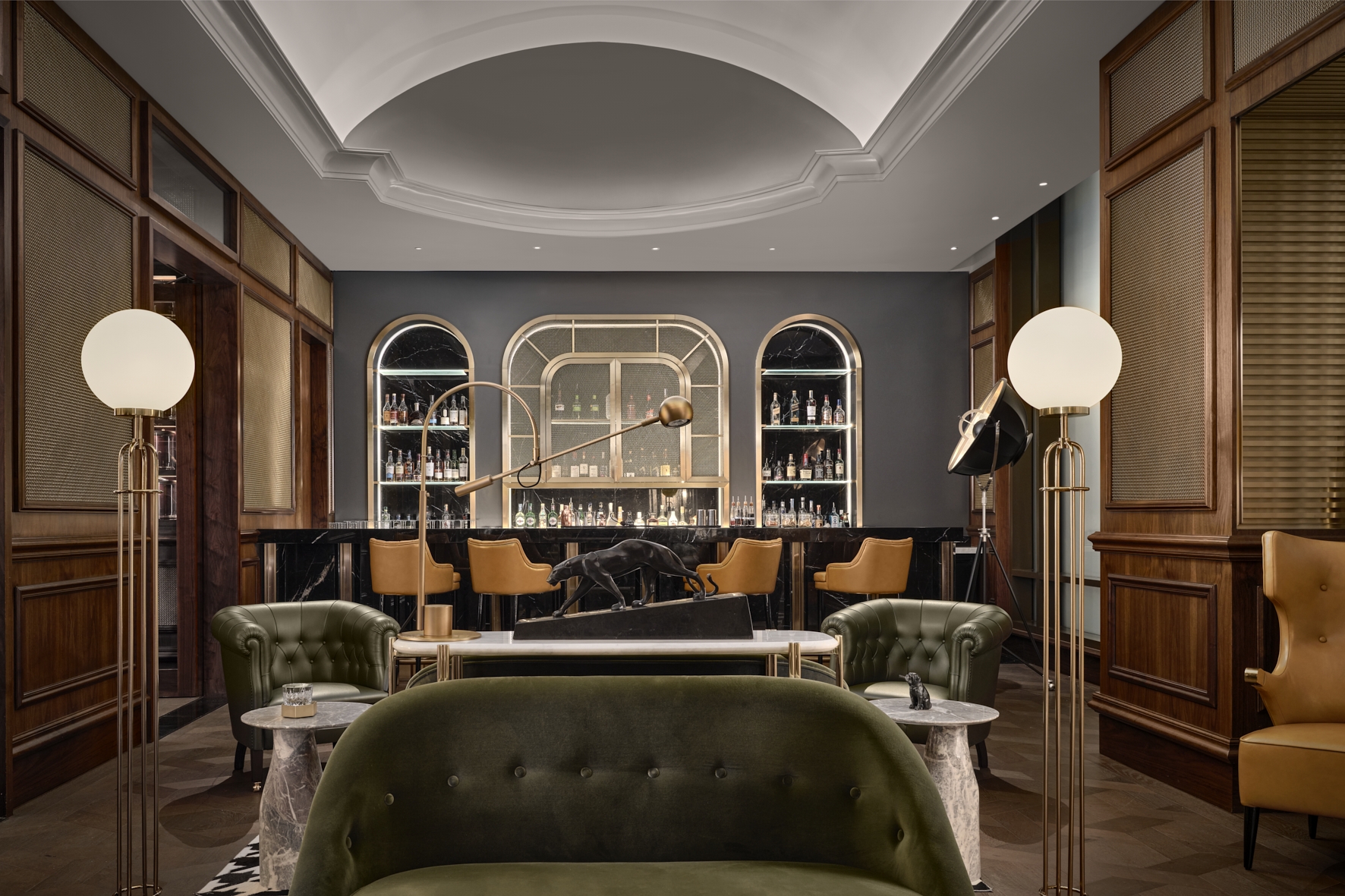 The Founder's Room transports guests away from the norm and into the glitz and glamour of the 1920’s. To set the stage for an authentic experience, a combination of rich textures and dark hues such as brushed brass, metal mesh, smoked glass and the elegant nero portoro bar marble feature, in harmony, work together as the key finishes throughout the bar. This is complemented by classic club loungers, art deco style fixtures and bespoke niche seating booths that feature a pull-out cocktail drawer that serves as the preparation table for the cigar sommelier.
