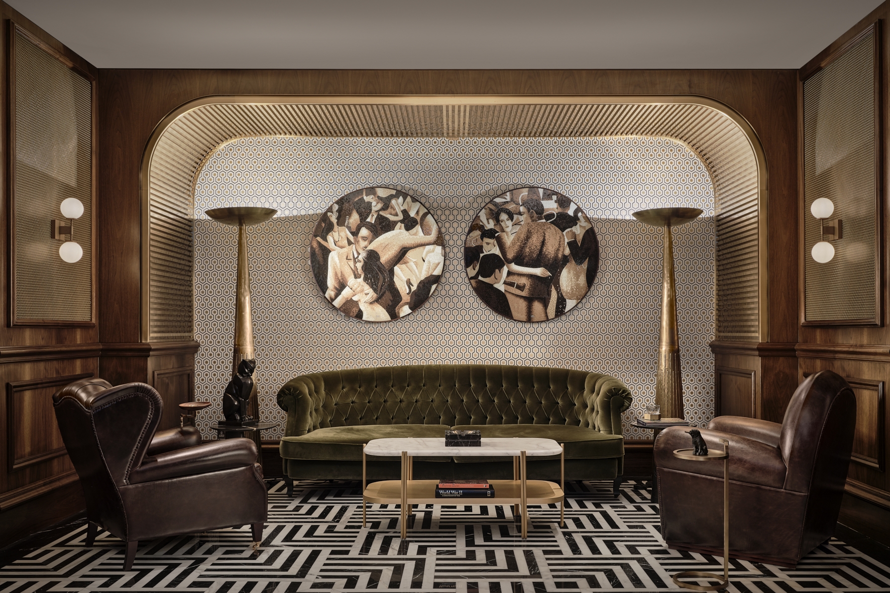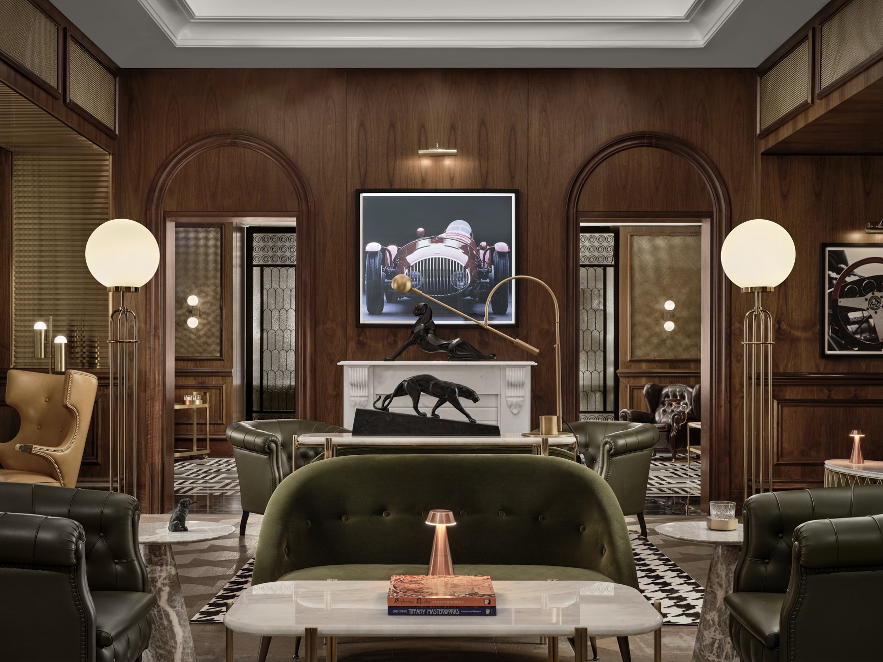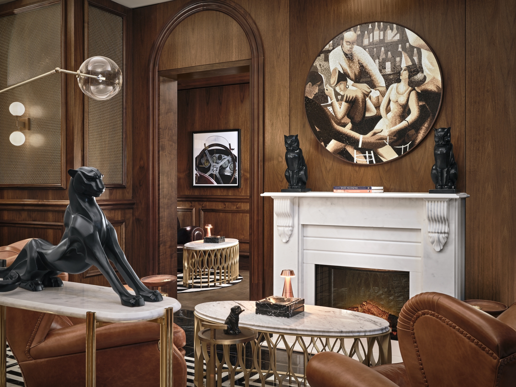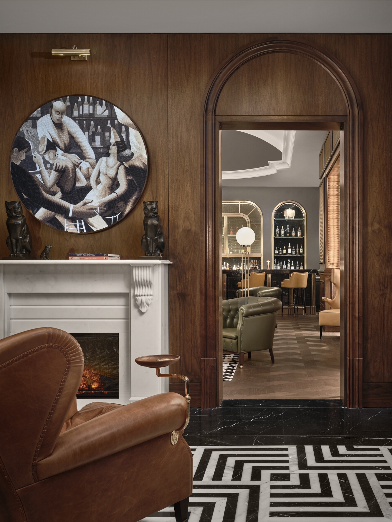The Founder's Room transports guests away from the norm and into the glitz and glamour of the 1920’s. To set the stage for an authentic experience, a combination of rich textures and dark hues such as brushed brass, metal mesh, smoked glass and the elegant nero portoro bar marble feature, in harmony, work together as the key finishes throughout the bar. This is complemented by classic club loungers, art deco style fixtures and bespoke niche seating booths that feature a pull-out cocktail drawer that serves as the preparation table for the cigar sommelier.