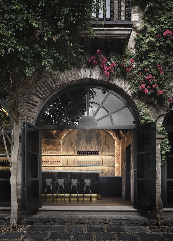 Nestled in the heart of San Miguel de Allende, Mexico, this project showcases a fusion of rich historical significance, avant-garde design, and artisanal craftsmanship intrinsic to the brand. Originally a 17th-century stable for the heroes of the Mexican Independence movement, the restoration embodies the brand's principles: innovation, quality, luxury, sustainability, and Mexican design. The “hero” of the property is, naturally, the tequila bar: strikingly clad with obsidian sourced from local agave fields, the bar is a physical reference to the surrounding land and cultural heritage of San Miguel de Allende. Taking formal cues from the existing arched openings around the property as well as the shape of the Casa Dragones bottle design. The property stands as a testament to a local history, design, and craftsmanship, offering guests an immersive experience into the sophisticated world of the brand's tequila while honoring Mexico's cultural breadth.