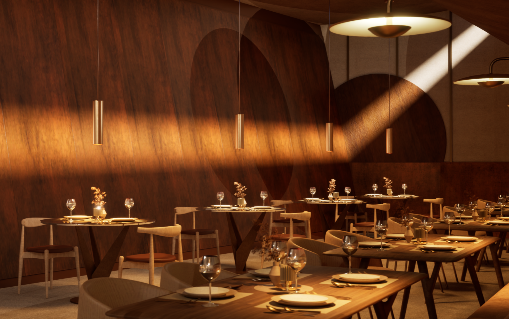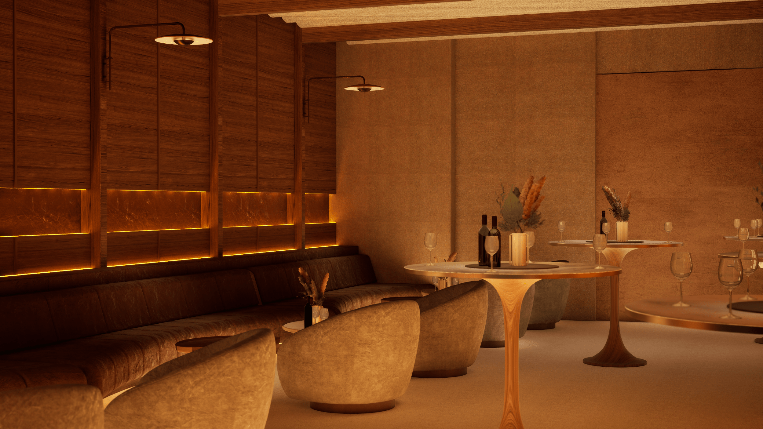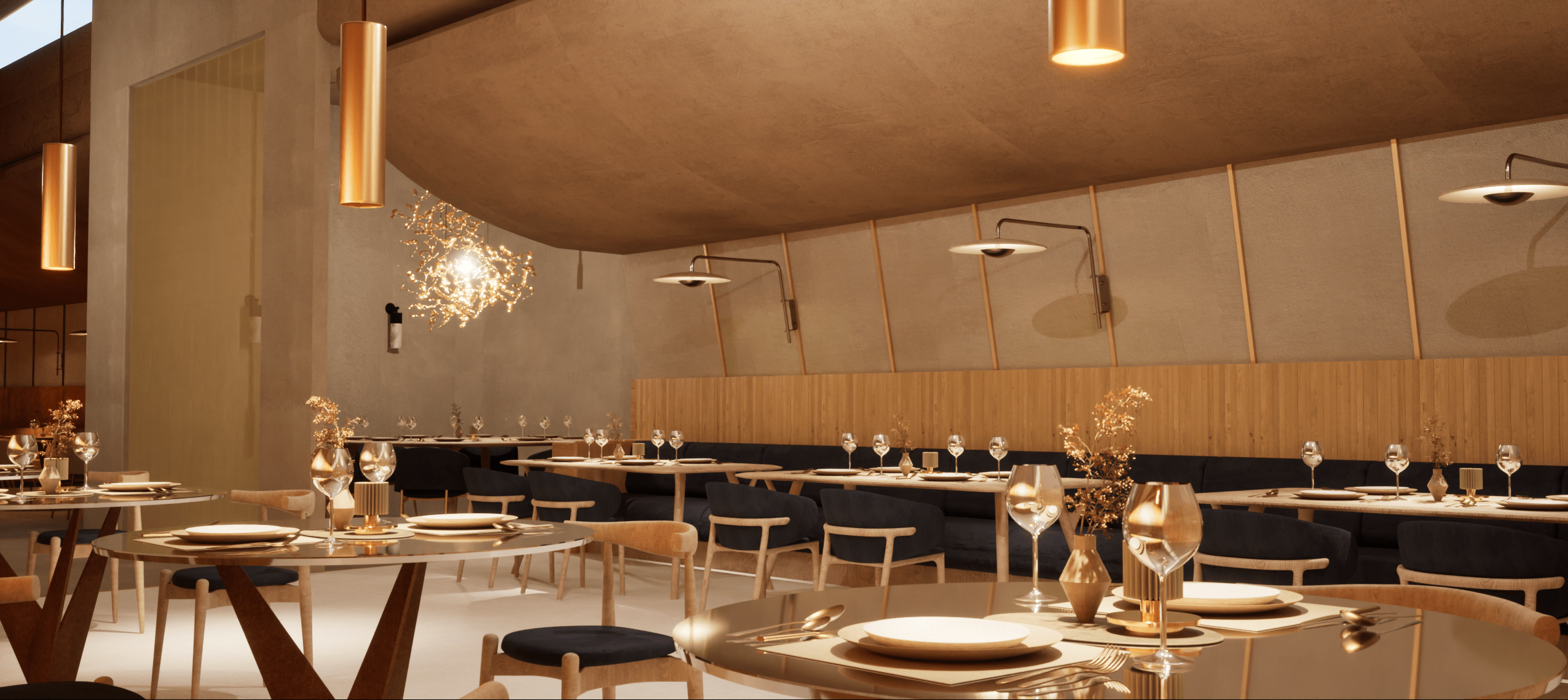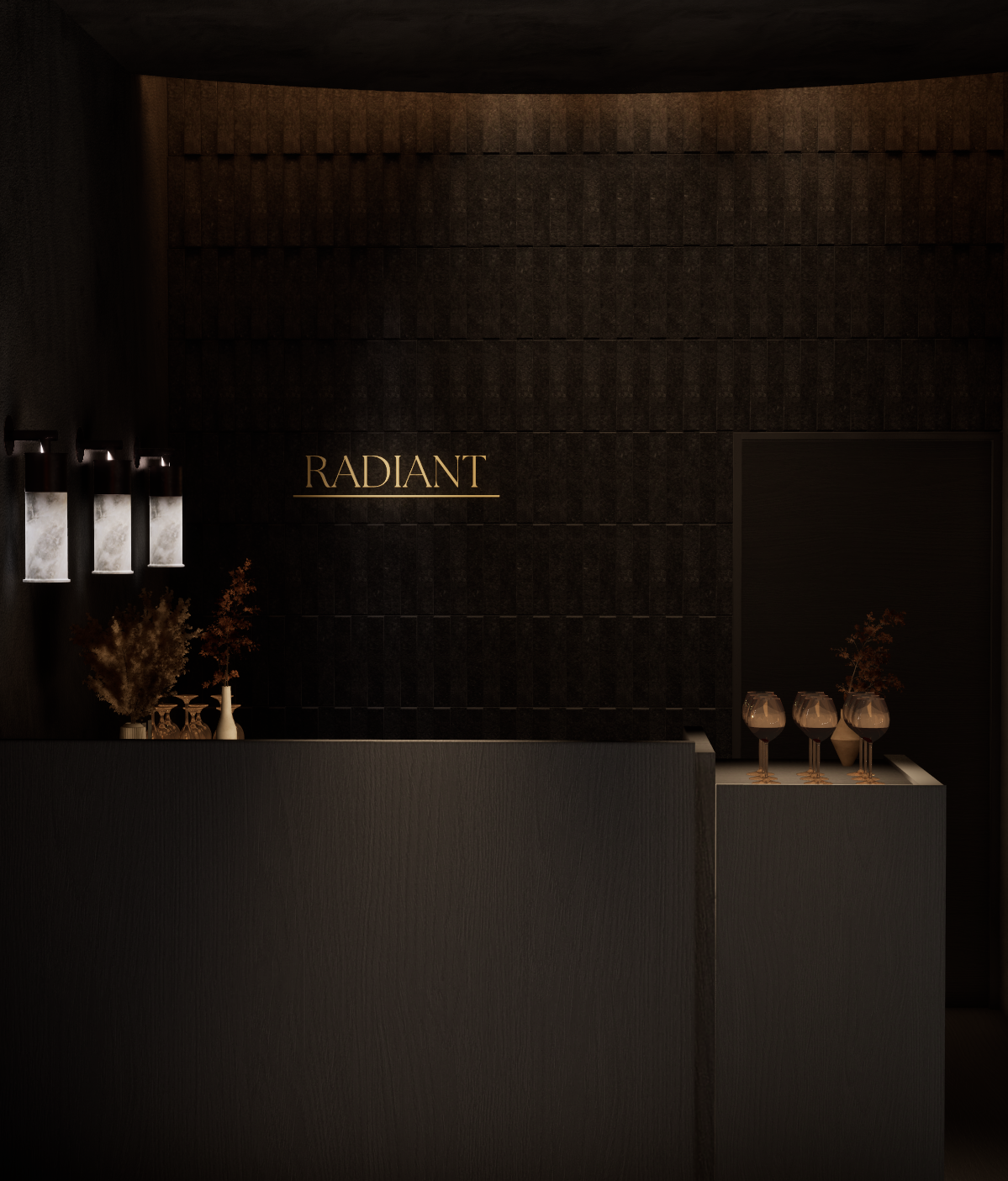 RADIANT is a wine-tasting restaurant, that offers a savory journey through the sun's phases. Here, people enjoy an unforgettable moment of discovery, through remarkable wine and food encounters.
