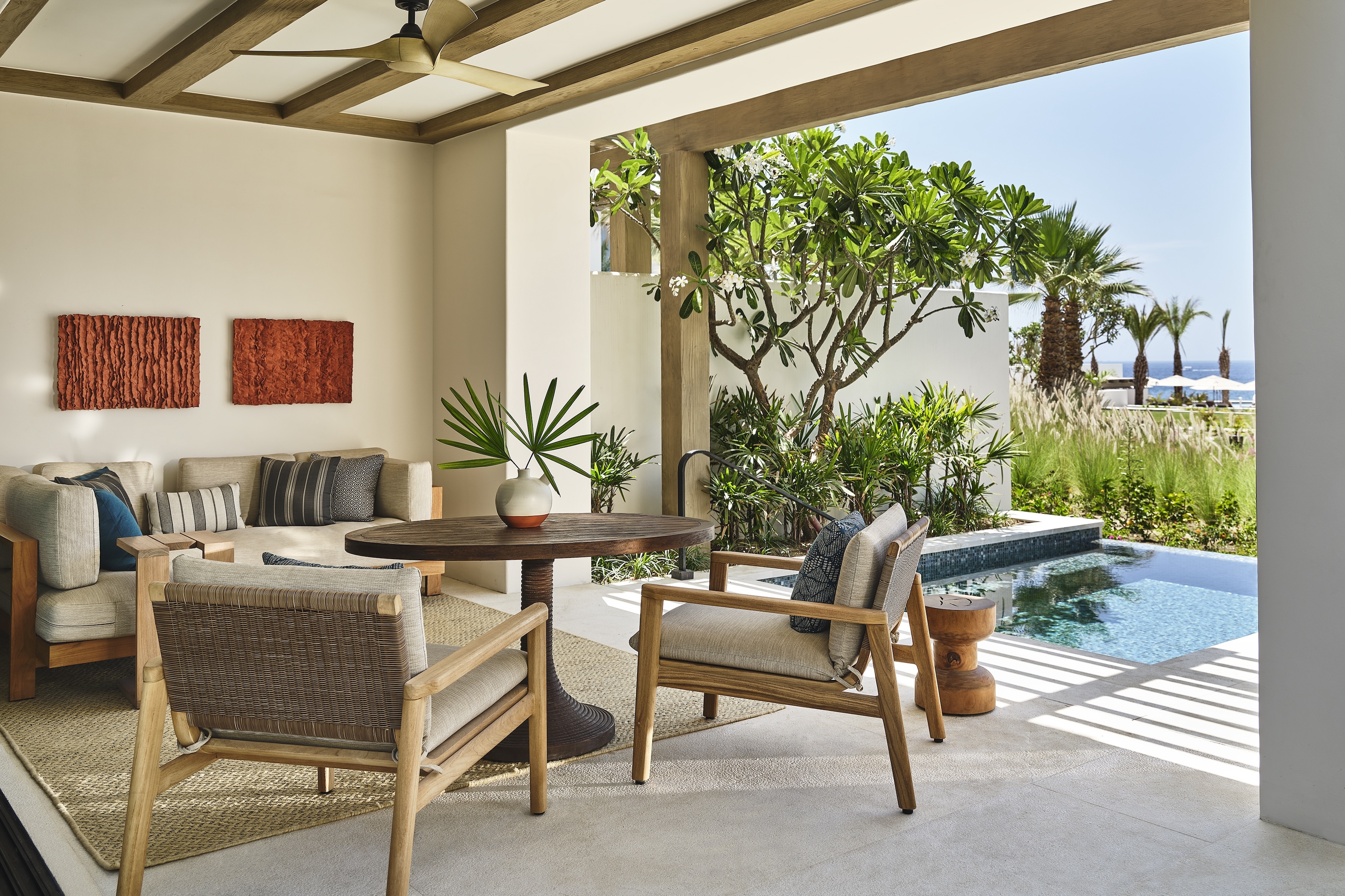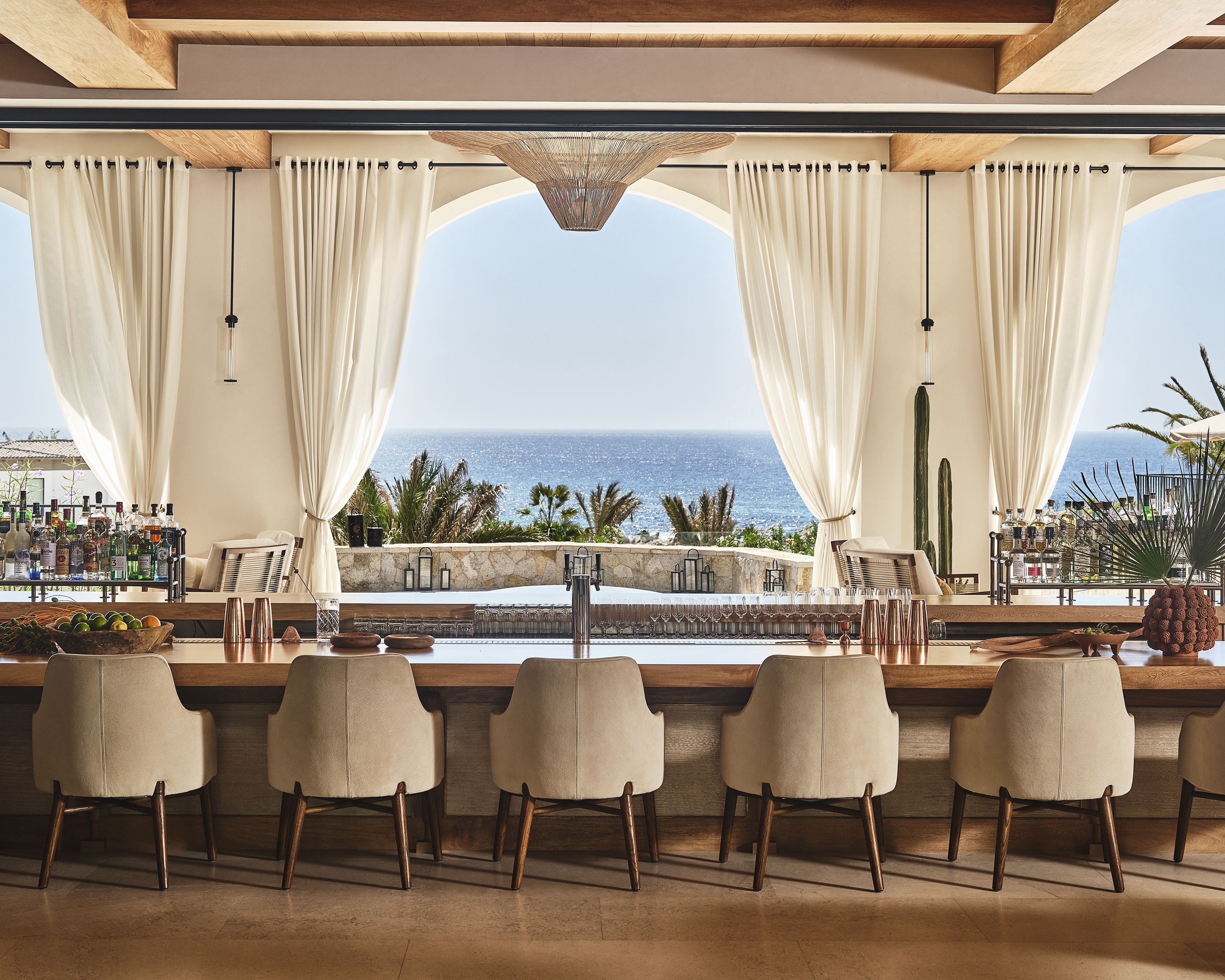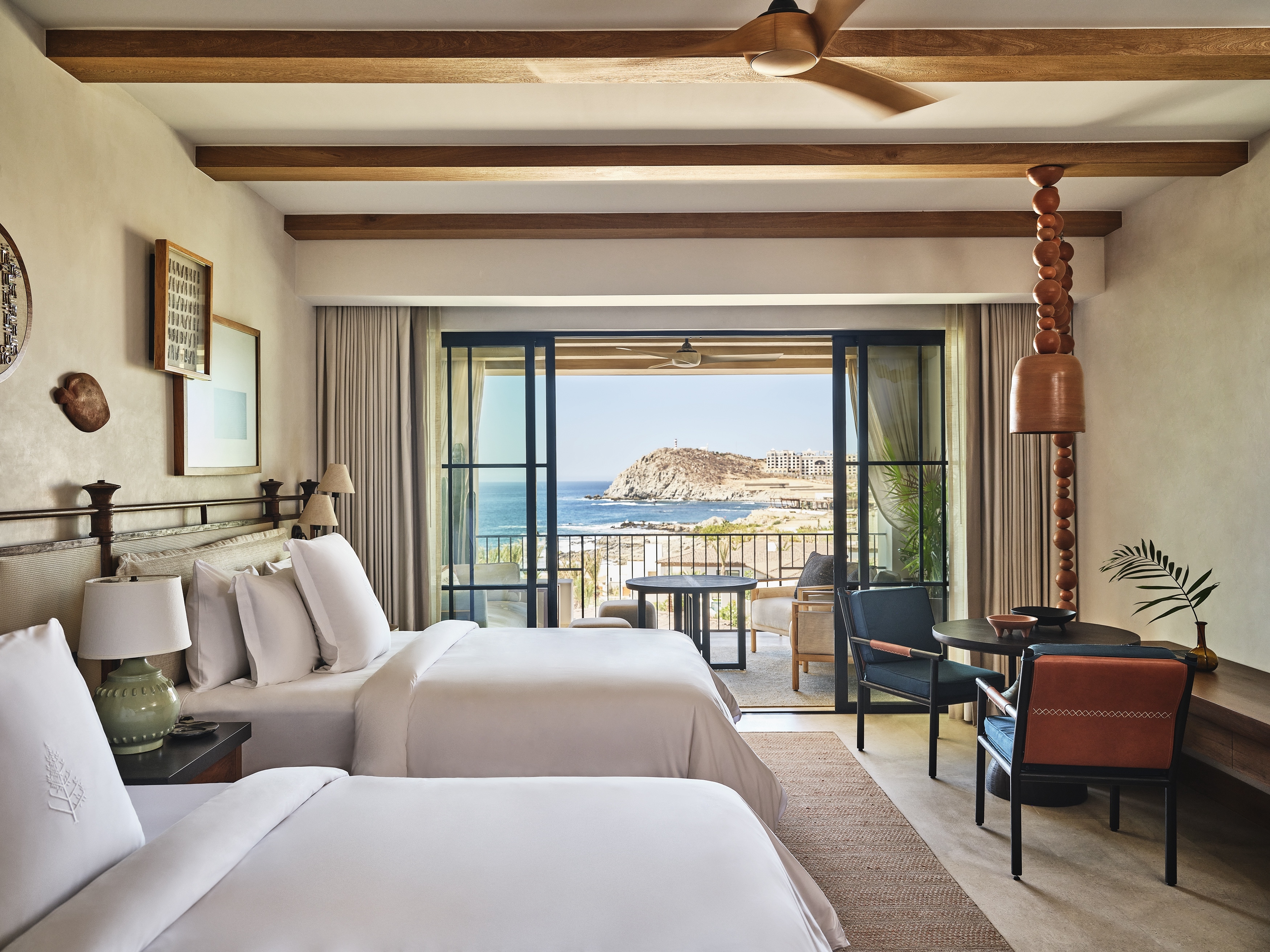 This highly anticipated resort set on Mexico's Baja Peninsula pays homage to the region’s rich cultural past while offering a luxurious, laid-back escape. Public spaces evoke the welcoming feel of a friend’s living room, and twists on tradition are found through the use of indigenous materials including ojinaga stone and Mexican alder. Guestrooms bring local character with luxurious finishes in design touches like artisanal tiles and ceramic light fixtures created by local artists are assembled on-site so no two structures look exactly the same. The spa emphasizes a seamless integration with the breathtaking outdoors, offering views of the lush greenery and private garden. The resort’s F&B venues each have a design, immersing guests in the culinary experience. At Palmerio, enamel lava tables, custom-crafted barrel ceilings, and Slim Aarons photographs create a relaxed ‘Mediterranean meets Baja’ environment. Rooftop bar Sora merges clean Japanese sculptural forms with the vivid colors of Peruvian textiles, reflecting the Nikkei bar menu. Family poolside venue Coraluz invites fun with custom mosaics inspired by Tonala pottery, rope swing chairs and a bar area just for the young set.