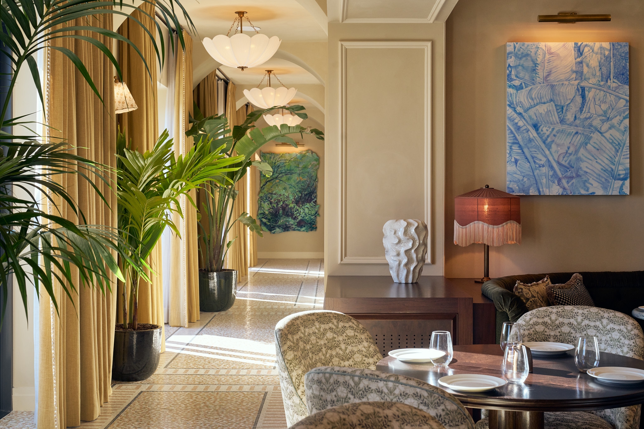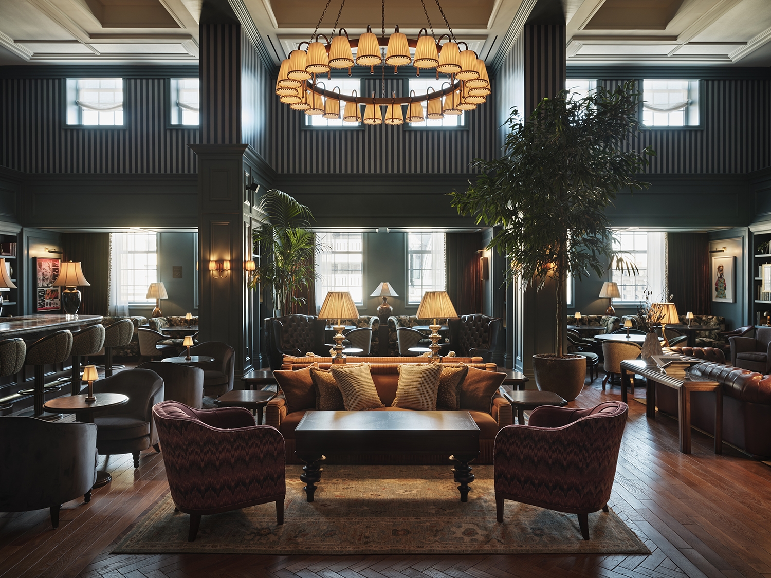 Ned’s Club Washington, DC introduces a new kind of members club in the heart of the capital. Just steps from iconic landmarks, Ned’s Club reimagines luxury through a deeply rooted sense of place. From arrival to departure, the experience is immersive, intentional, and distinctly local. Former white-box offices have been transformed through meticulous design work, giving every room lived-in character. Members enjoy four restaurants, a library, lounges with live music, a rooftop, and more. Inside, Art Deco details, De Stijl patterns, mixed metals, vintage selections, and custom mosaic floors create a bold yet warm aesthetic. Craftspeople including millworkers, artists, and glassblowers contributed intricate built-in details, creating a luxurious, historically inspired, and cohesive environment that defines the member experience. The design team’s vision was to create a bold new hospitality experience where professionals and locals alike could be connected to the city’s spirit while feeling removed from its daily bustle. The result is three floors of breathtaking spaces—a refined urban retreat that celebrates the city’s character.