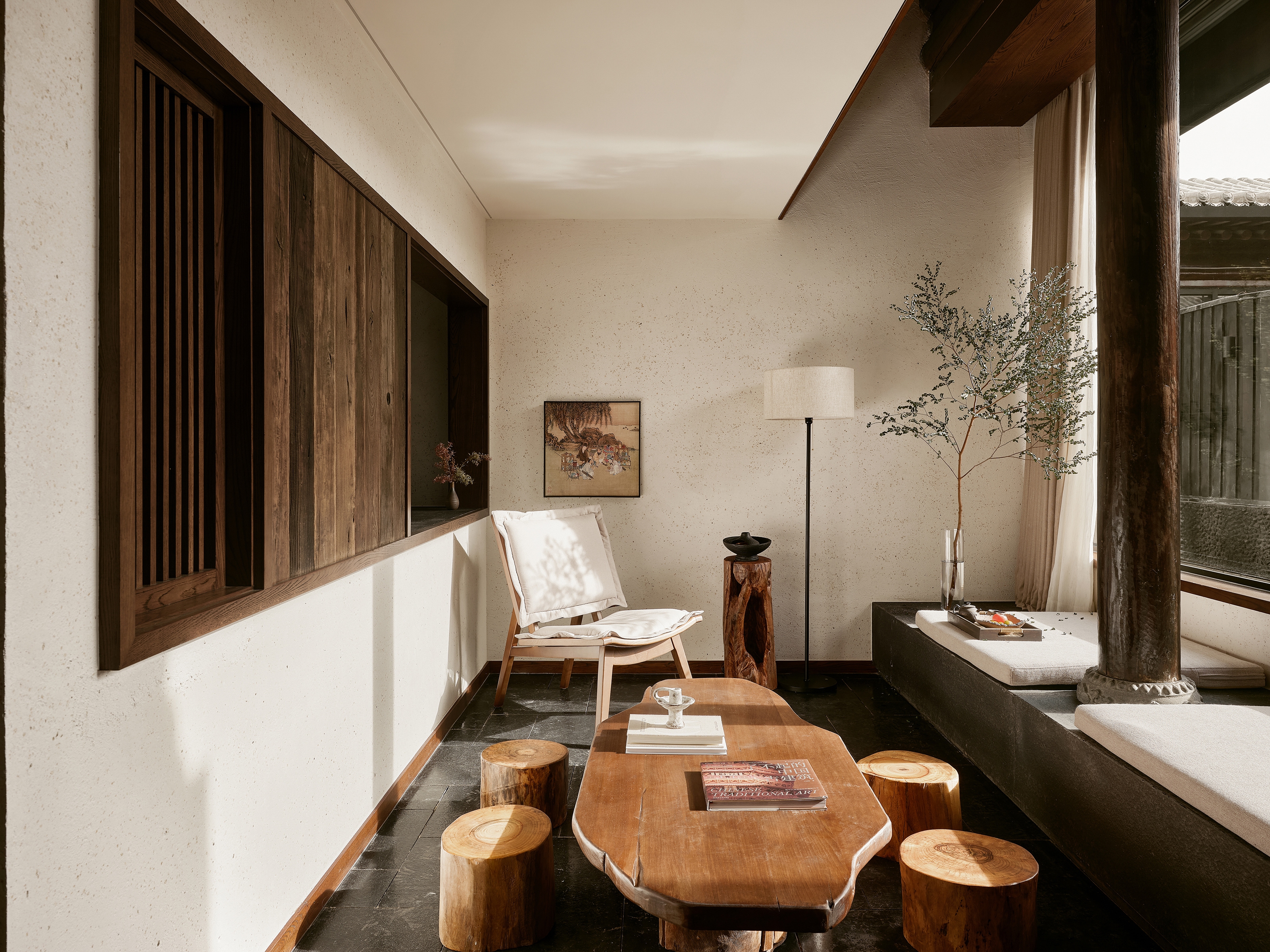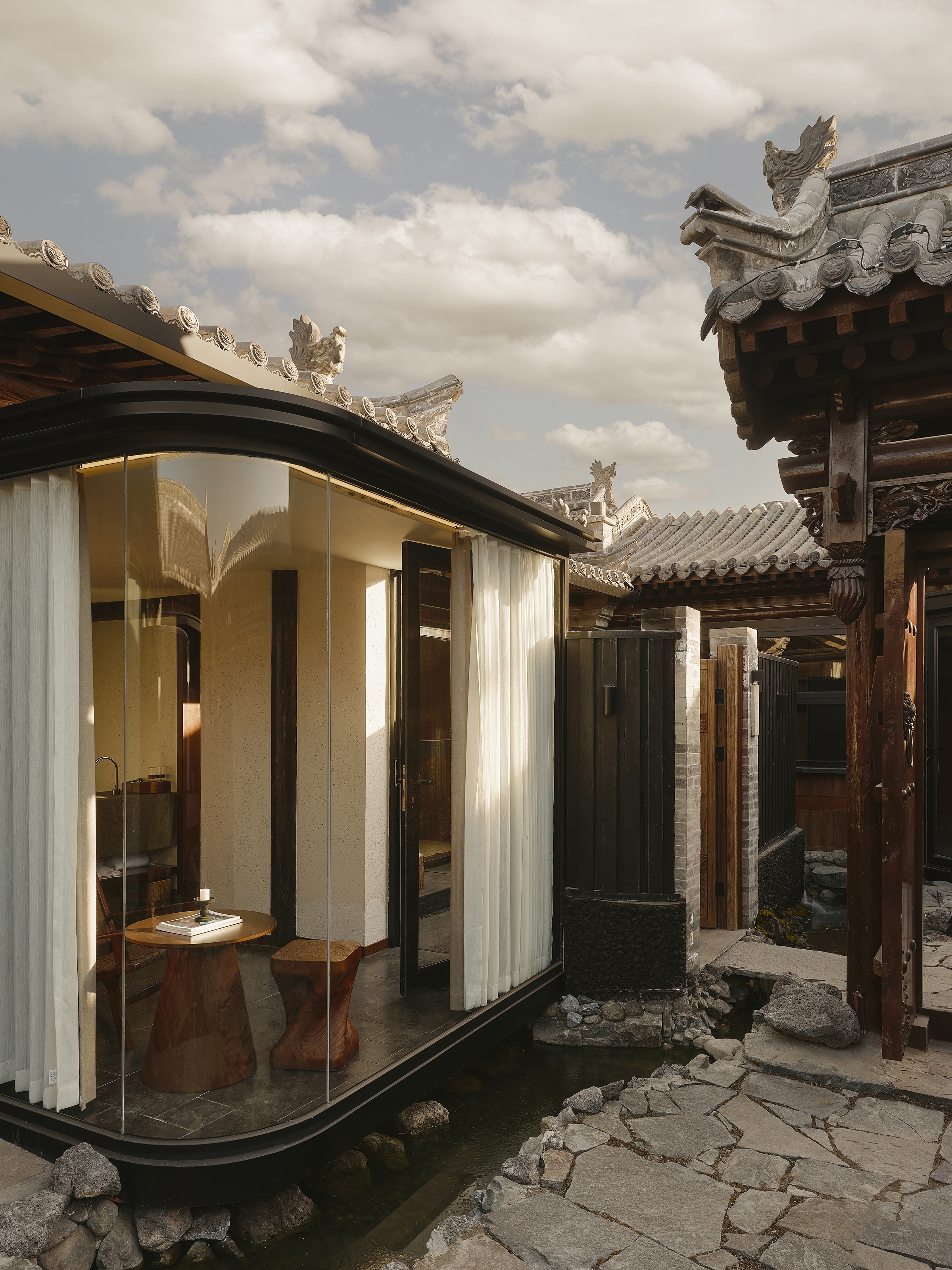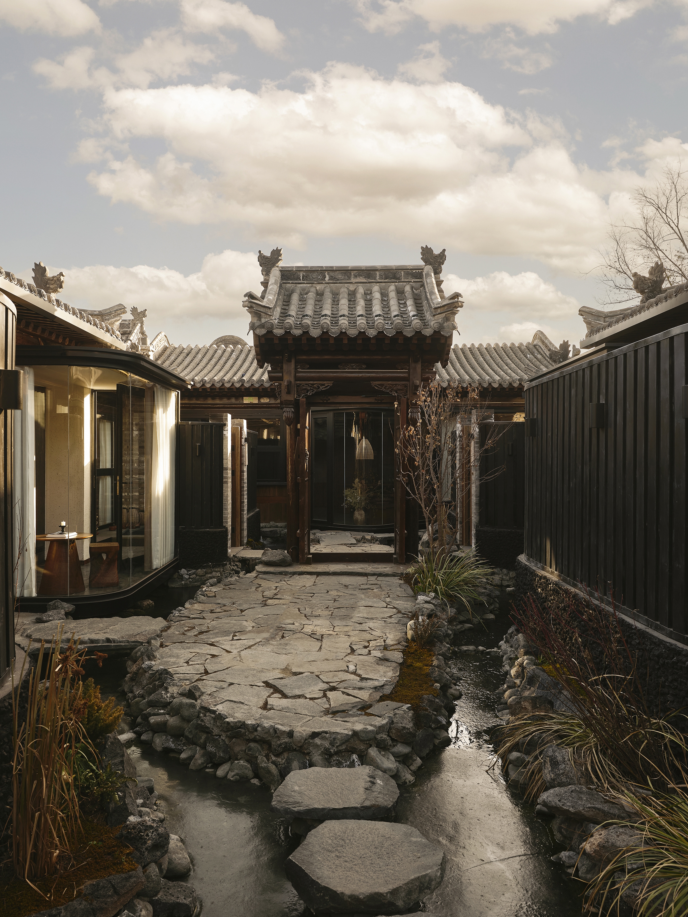 Nestled in Datong’s historic core, this sanctuary transforms a traditional Siheyuan courtyard into a secluded retreat. Drawing inspiration from the region’s unique volcanic plateau, locally sourced basalt stone is integrated throughout the private hot-spring courtyards and shared water features, creating a tangible, grounding connection to the ancient earth.