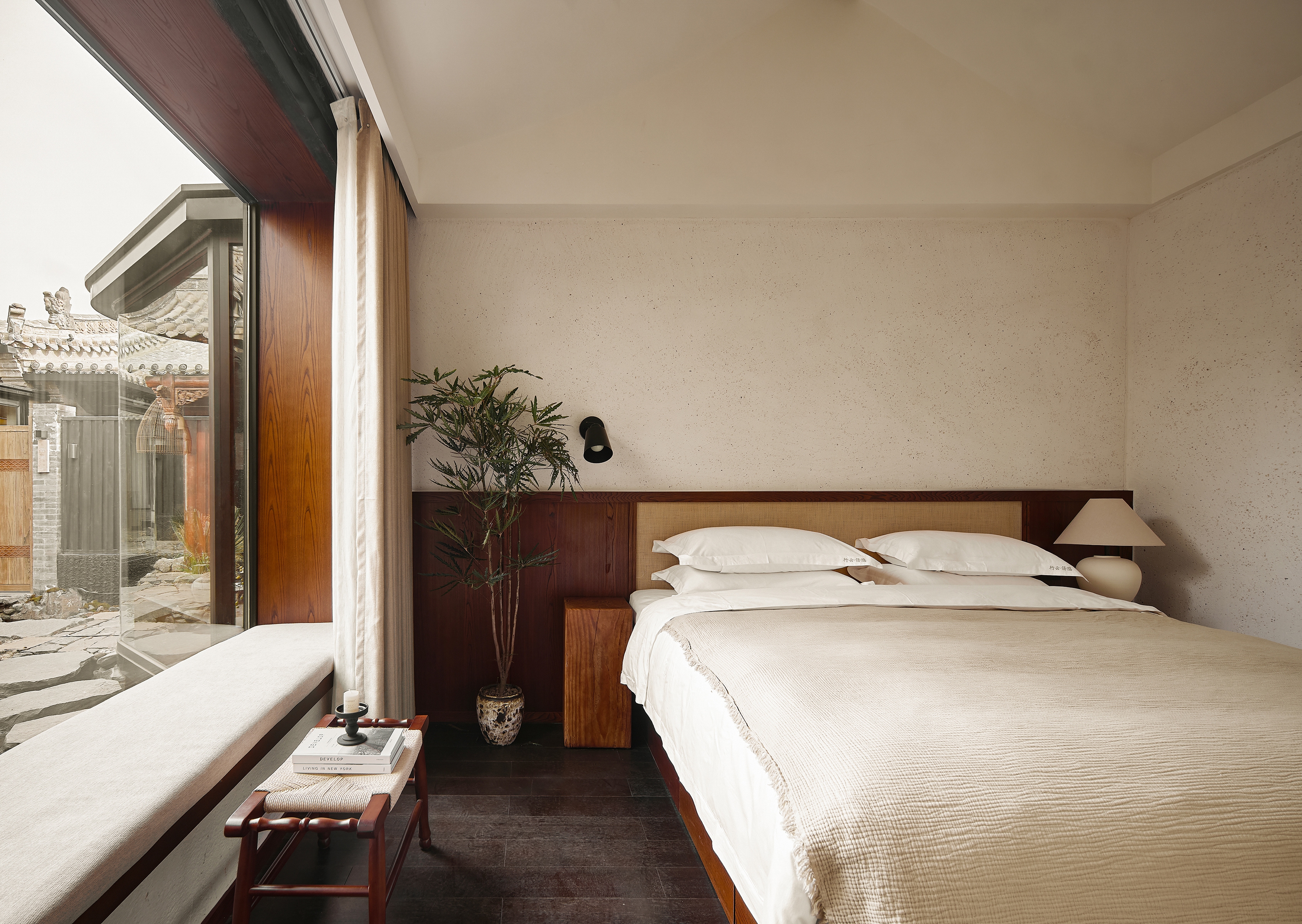 The design is structured around a deliberate spatial sequence: from the serene bedroom, through a contemplative leisure area, to the private hot-spring courtyard—a journey culminating in a restorative ritual. By weaving together the historic fabric of the courtyard, the essence of local nature, and the fluidity of modern space, the project creates a uniquely immersive experience. Guests are invited to touch the primordial stone, engage with the tranquil landscape, and ultimately enjoy both the soul of history and the comfort of a serene, contemporary refuge.